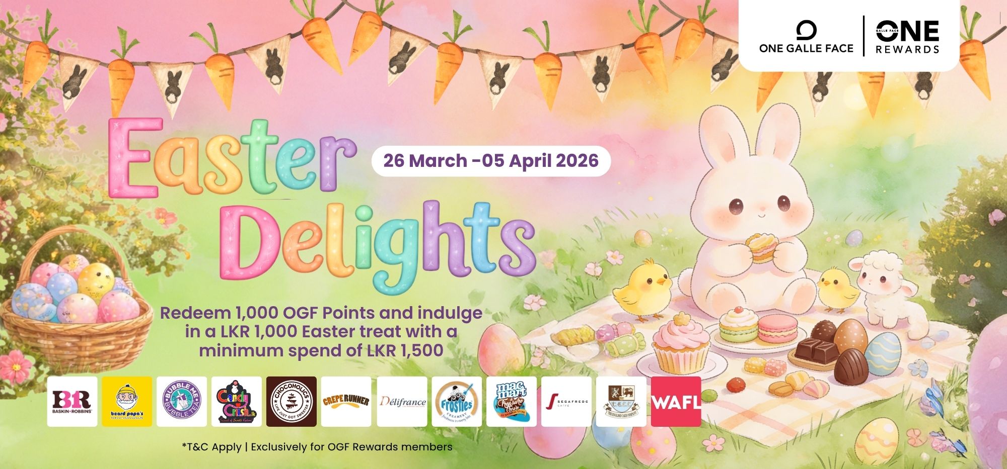 Celebrate the Easter season with OGF Rewards!Members can redeem 1,000 points to enjoy a LKR 1,000 E-Voucher, valid on sweet treats and dining experiences at selected outlets, with a minimum spend of L...